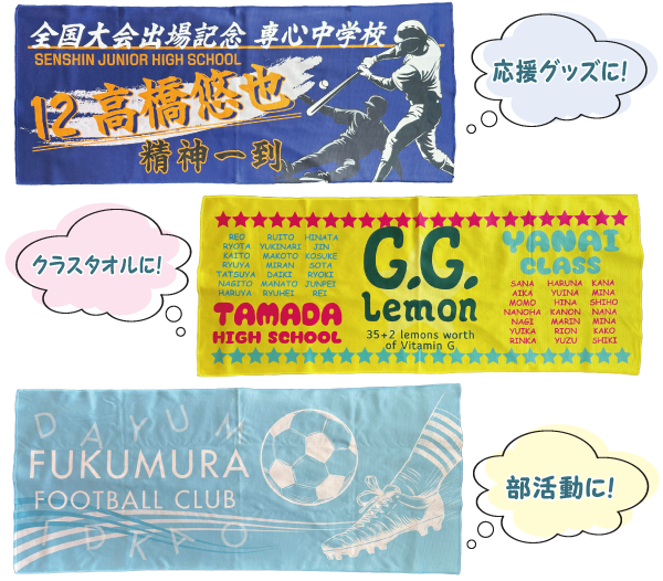 部活動でオリジナルタオルを作るチームが増えています。